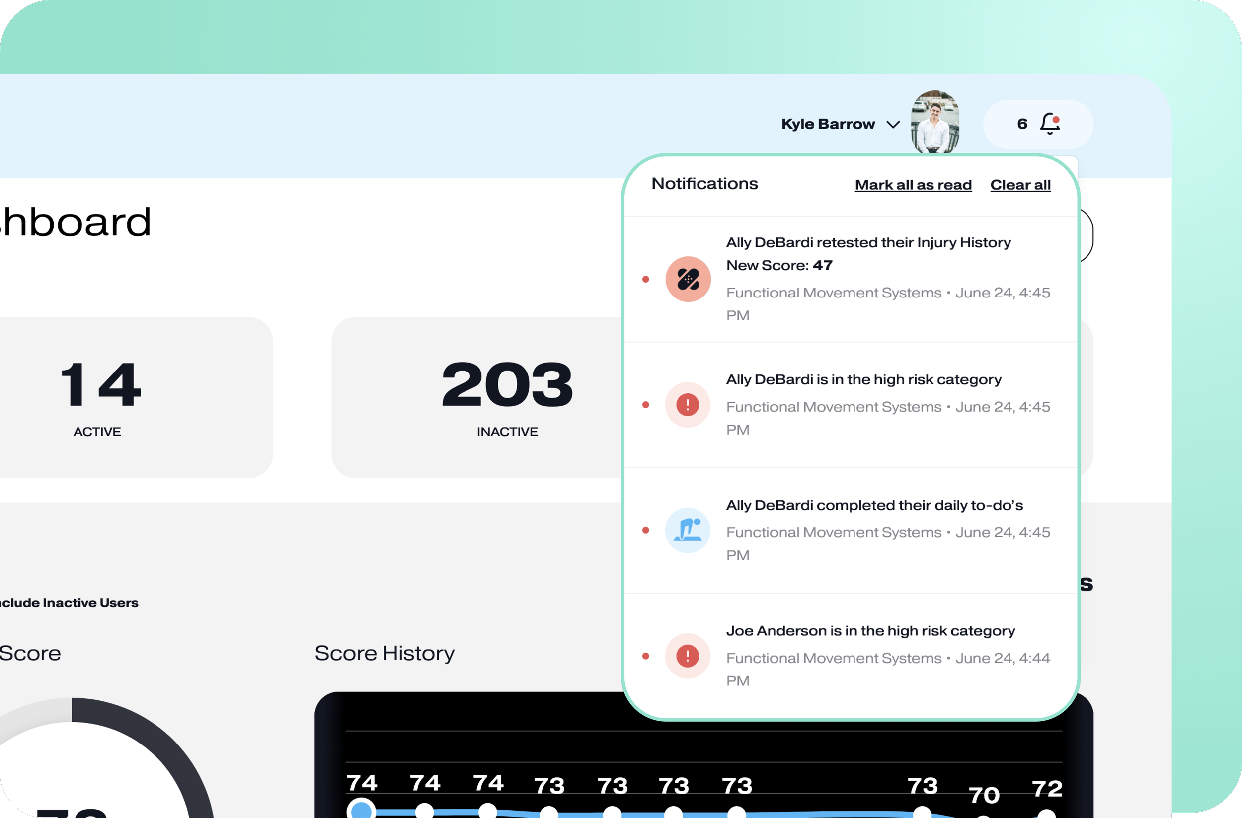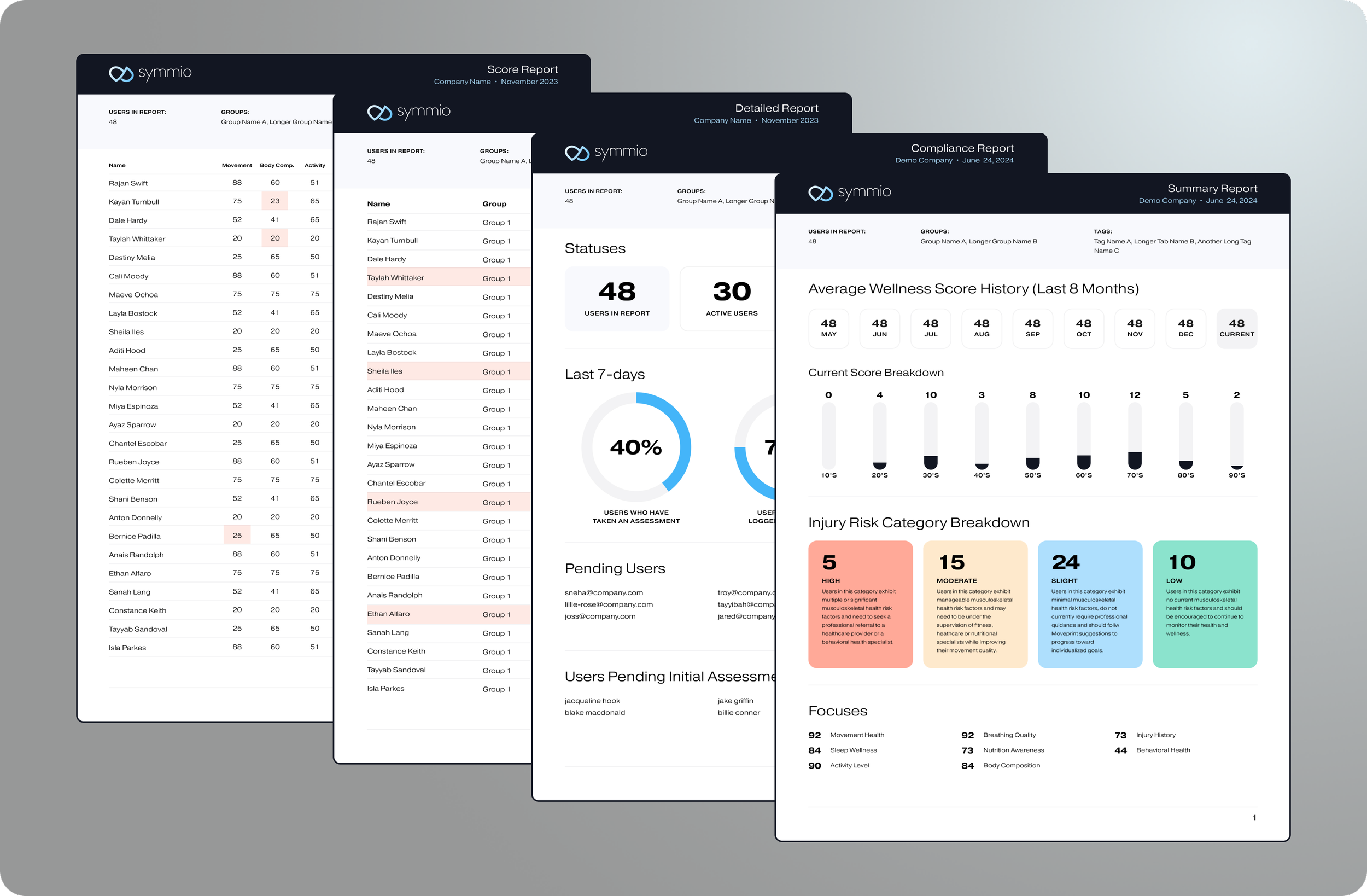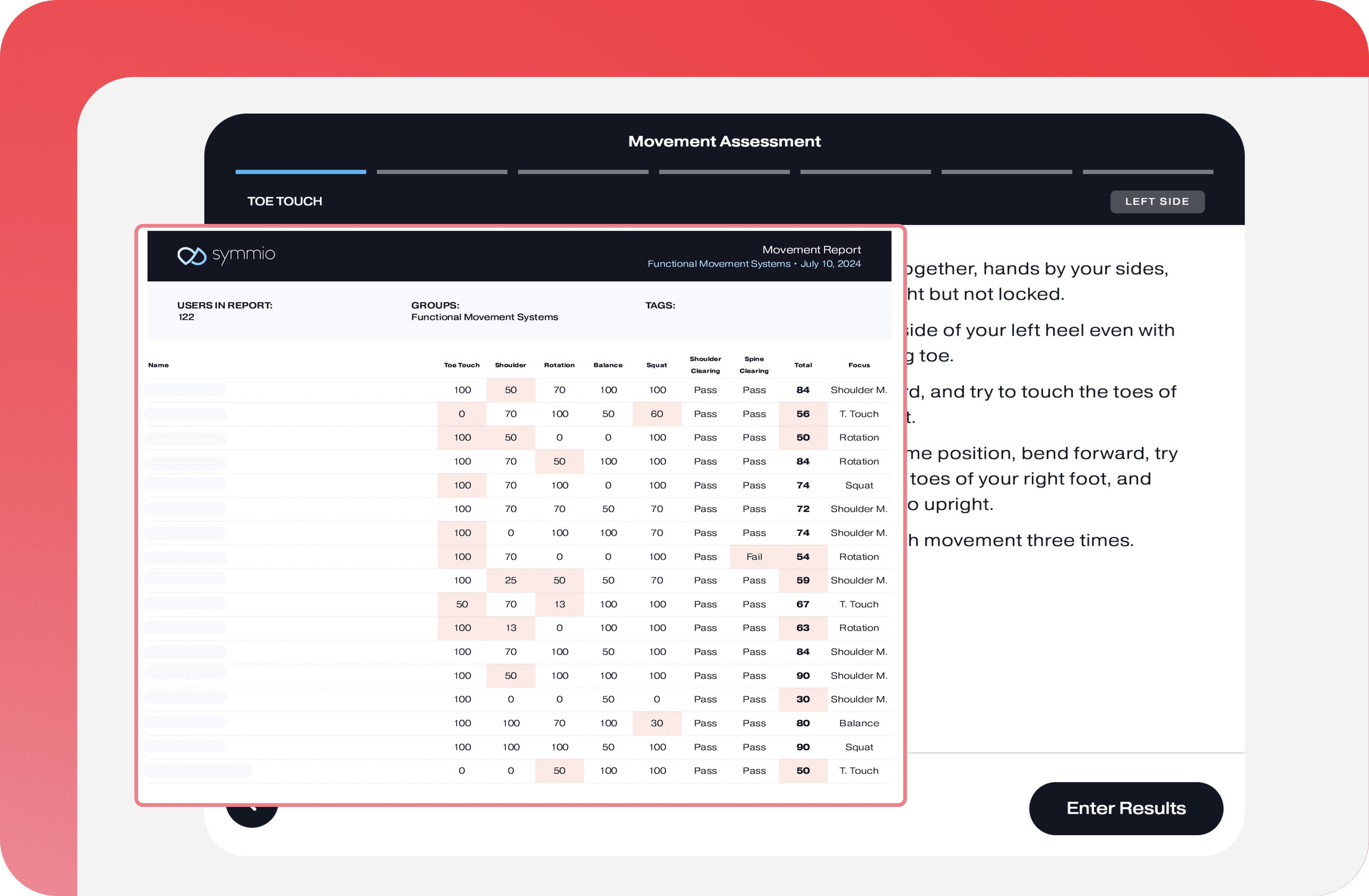 The new movement summary report provides you with a detailed yet simple report on each user, what they scored for each movement and what pattern is the focus of priority.